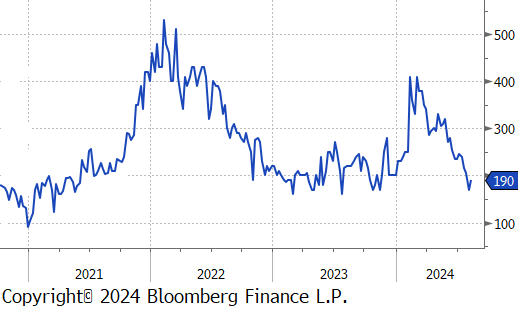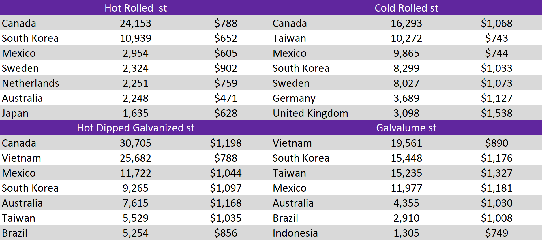 Tandem products both rose by $20, resulting in the HDG – HRC differential to rebound by $20 or 11.8% to $190.