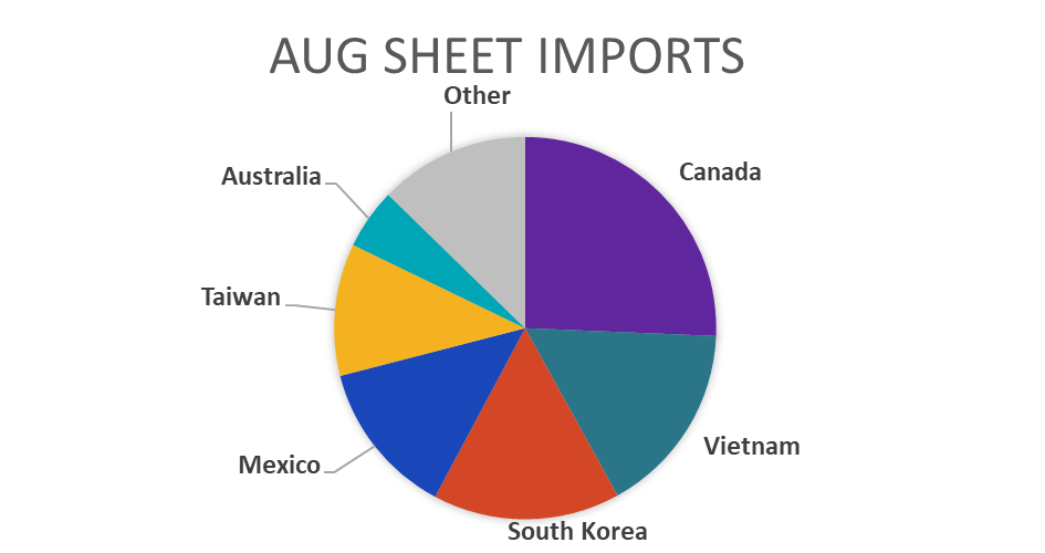 August Projection – Sheet 924k (up 36k MoM); Tube 422k (up 66k MoM)