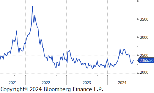 The Baltic Dry Index inched up by $9 or 0.5% to $1,692, marking the second consecutive week of price increases, continuing to rebound from recent price low.