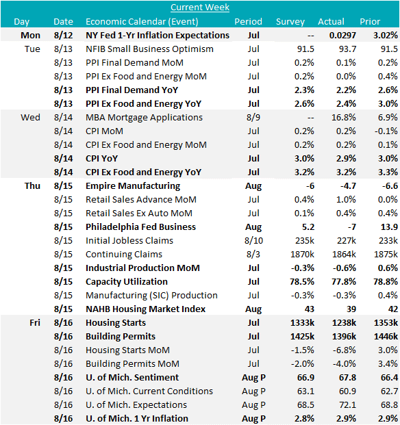 This week’s highlight was the cooling inflation data, reinforcing expectations for a September rate cut. The Core CPI YoY rose 3.2% in July, marking the lowest pace in over 3 years. The headline CPI YoY increased by 2.9% vs the forecasted 3.0%. The Core PPI YoY rose 2.4% in July vs the anticipated 2.7%, while the overall PPI YoY was also below expectations, 2.2% vs 2.3%. This easing was largely due to a decline services, signaling a broader moderation in inflation pressures. Regarding inflation outlook, the NY Fed 1-Yr Inflation Expectations held steady at 3.0%, and the University of Michigan’s preliminary August results for 1-Yr Inflation Expectations remained at 2.9% vs the forecasted 2.8%.
