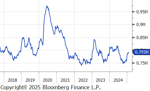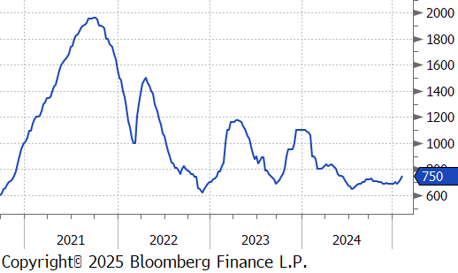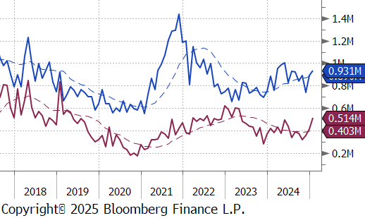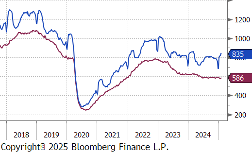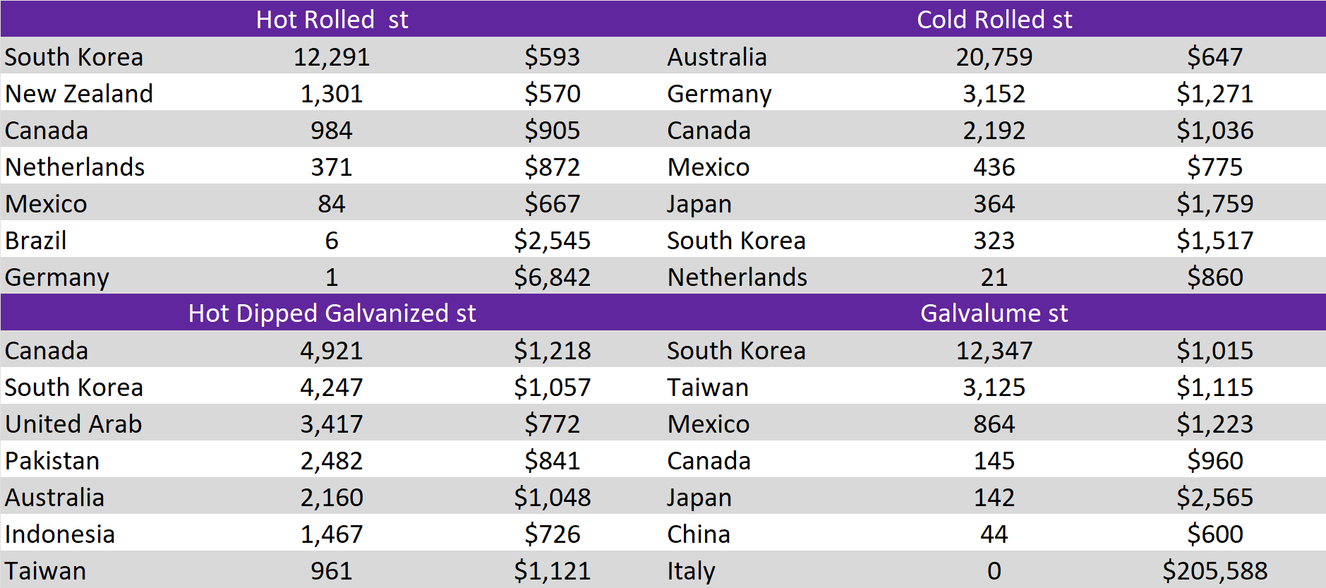 • Steel Imports: are showing an increase for January’s arrivals from December’s imports, which census data showed a level just below 900k.
