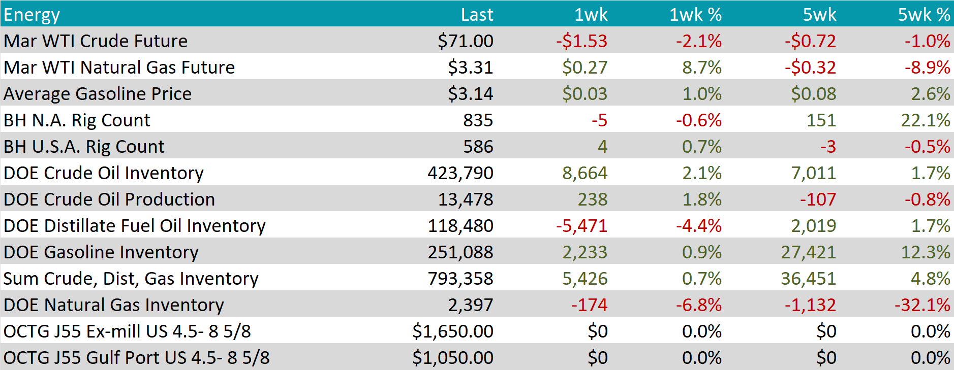 The Baker Hughes North American rig count reduced by 5 rigs, bringing the total count down to 835 rigs. Conversely, the US rig count gained 4 rigs, bringing the total count to 586.