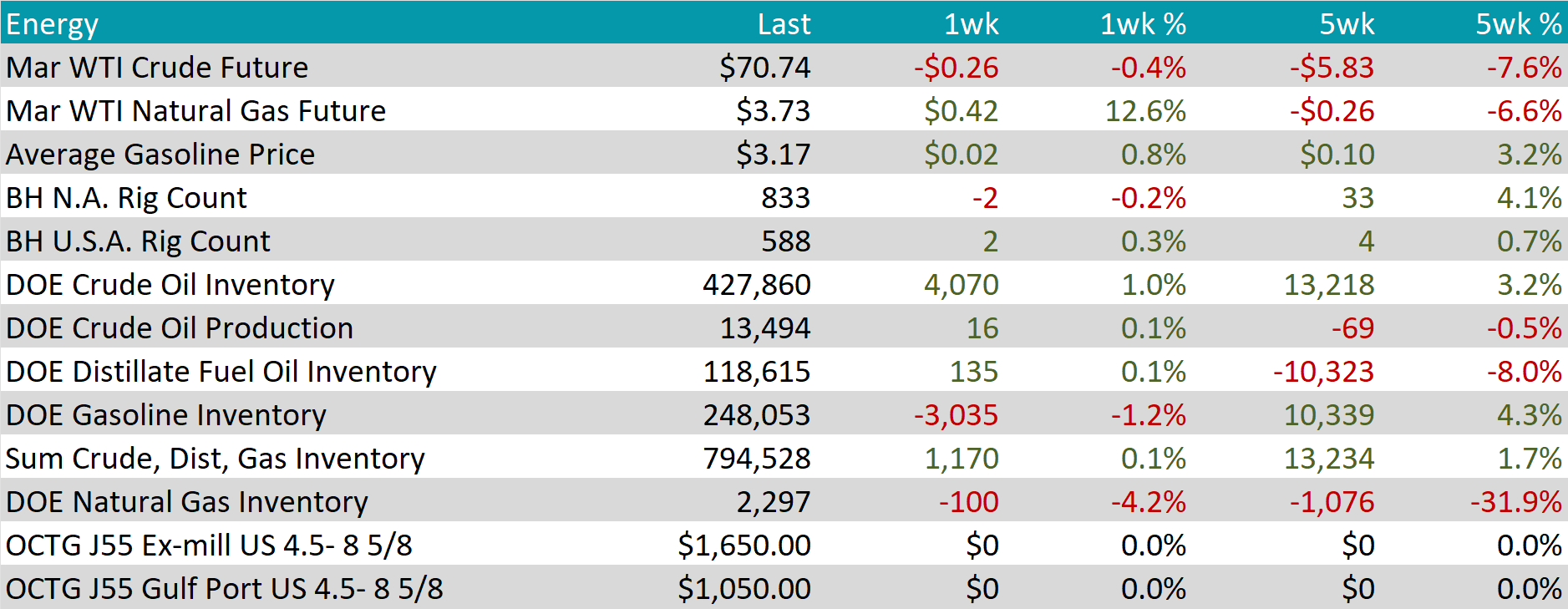 The Baker Hughes North American rig count reduced by 2 rigs, bringing the total count to 833. Conversely, the US rig count added to rigs, bringing the total count to 588 rigs.
