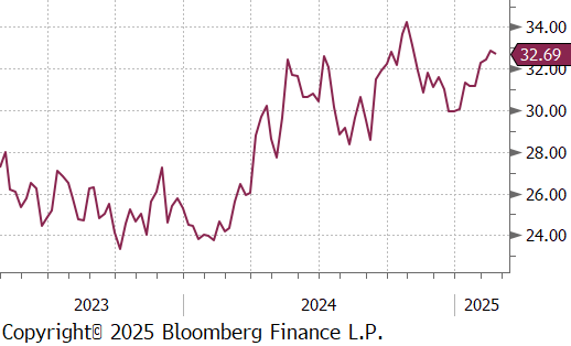 Silver inched up by $0.41 or 1.3% to $32.86. Investors remained watchful of U.S.-led diplomatic efforts to resolve the war in Ukraine, which, if successful, could reduce demand for safe-haven assets like silver. Despite recent fluctuations, silver reached a three-month high, driven by strong industrial demand, particularly in electrification and manufacturing. Fresh data highlighted China’s addition of 357 gigawatts of solar and wind power in 2024, reinforcing silver’s critical role in the clean energy transition. Meanwhile, India’s Oil and Natural Gas Corp pledged INR 1 trillion in wind and solar investments by 2030, and Indonesia committed to adding 17 gigawatts of solar capacity through state-owned enterprises, further solidifying long-term demand for industrial silver.