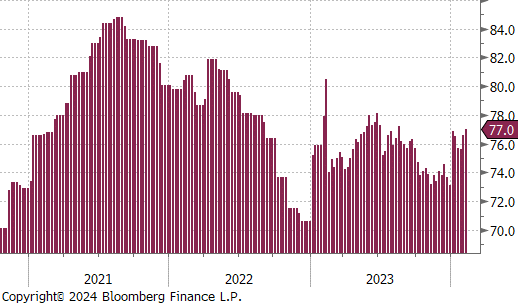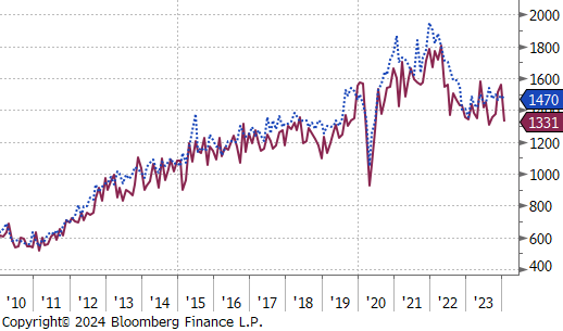 The 2nd month busheling future fell by $5 or -1.1% to $455, its lowest level since early December 2023. Meanwhile, the busheling spot price remained stagnant at $480.