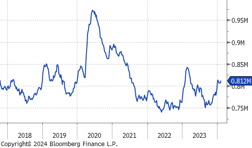 February Projection – Sheet 809k (down 13k MoM); Tube 506k (up 149k MoM)