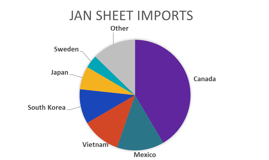 January Projection – Sheet 766k (up 14k MoM); Tube 361k (down 10k MoM)