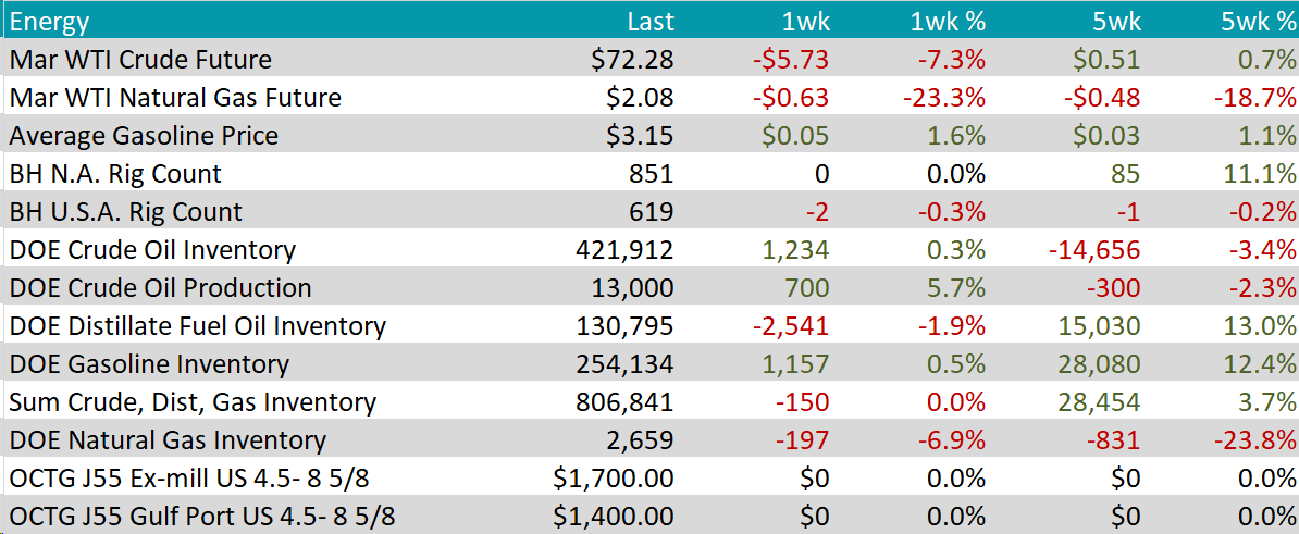 The Baker Hughes North American rig count remained unchanged at 851 rigs. The US rig count decreased by 2 rigs, bringing the total count to 619 rigs.
