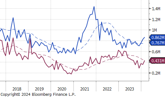 February Projection – Sheet 862k (up 40k MoM); Tube 431k (up 73k MoM)