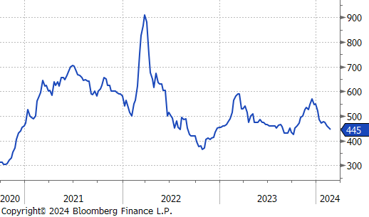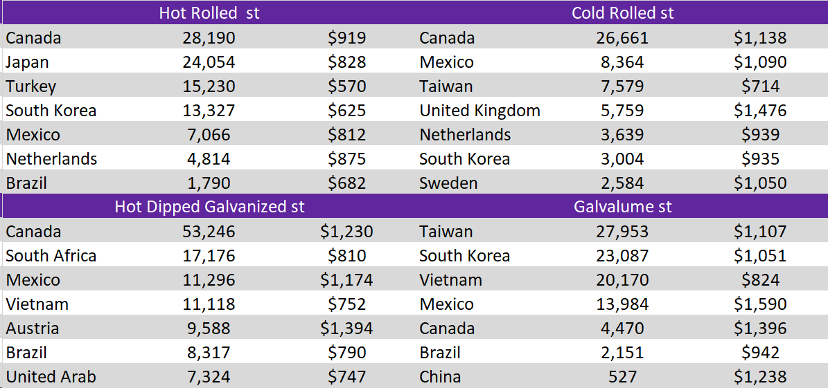Tandem products both fell by $50, causing the HDG – HRC differential to decline by $30 or -8.3% to $330.