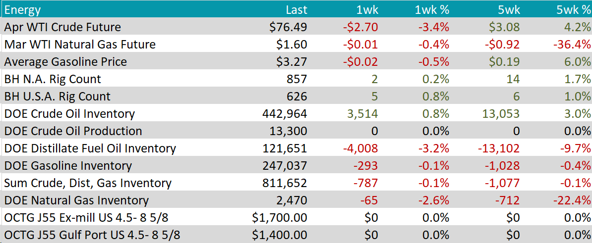 The Baker Hughes North American and US rig count both made gains, with the former adding 2 rigs, bringing the total count to 857 rigs and the latter increasing by 5 rigs, bringing the total count to 626 rigs.