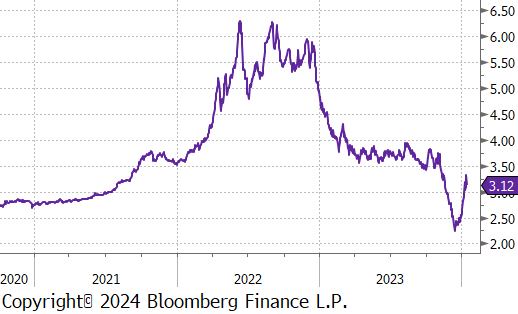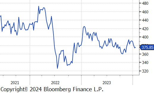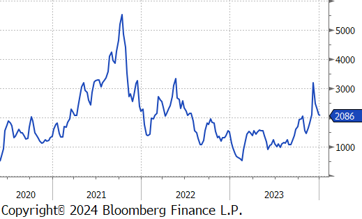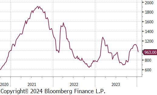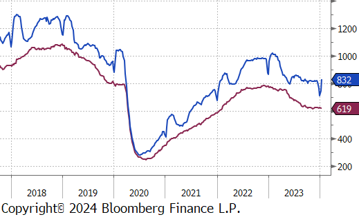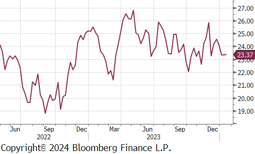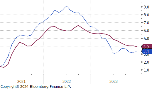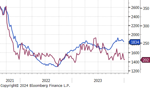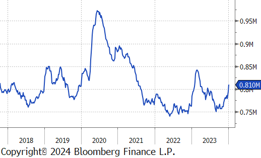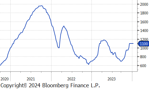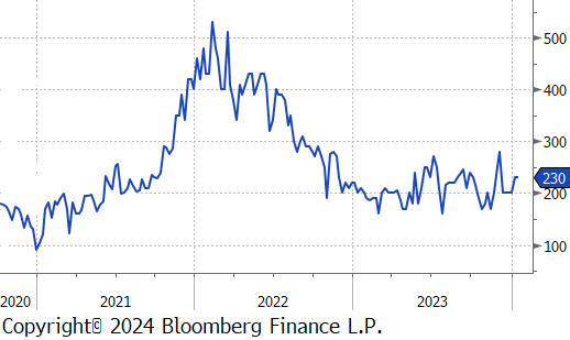 PPI (Ex Food & Energy) YoY rose by 1.8%, an easing from the 2% increase seen in November and below market estimates of 2.0%. This marked the lowest rate since December 2020, continuing the trend of disinflation in producer prices. While this is a promising topline trend, margins at the wholesale level have not been benefitting from this recent trend – which suggests that this low level of price inflation will not immediately trickle through to consumers.