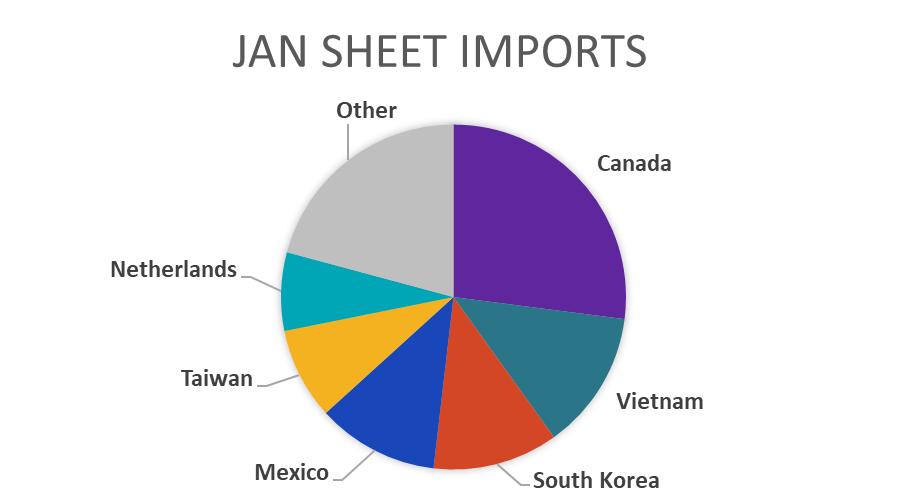 January Projection – Sheet 684k (down 133k MoM); Tube 319k (down 138k MoM)