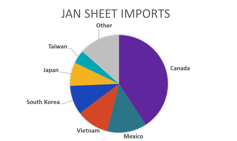 January Projection – Sheet 800k (up 47k MoM); Tube 370k (down 1k MoM)