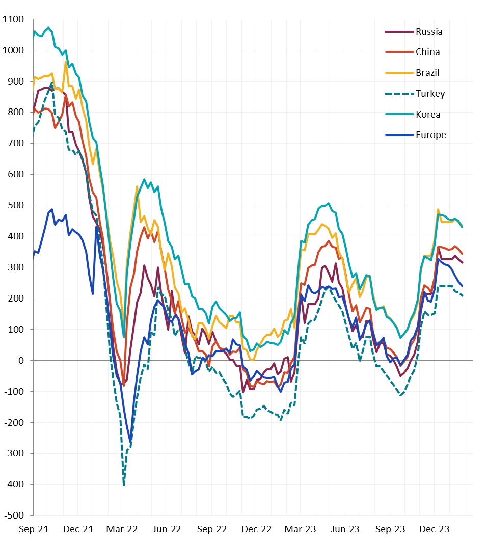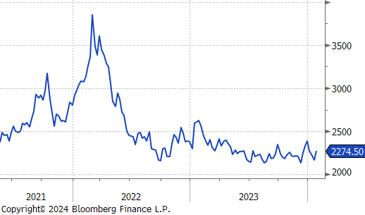 • December Imports were up compared to November but came in below expectations. The current January estimate shows a continued increase of arrivals but at a historically subdued level given that the global differential has been increasing for 4 months.