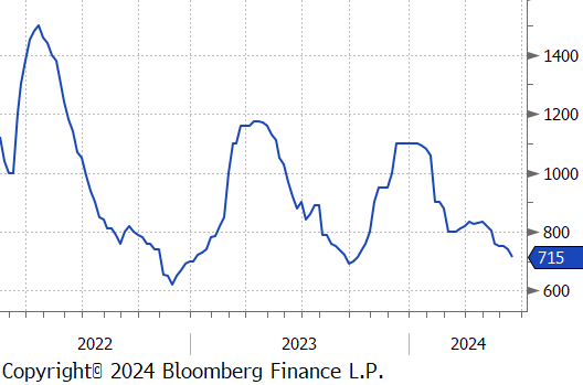 The HRC spot price dropped by $25 or -3.4% to $715, hitting its lowest price since early-October 2023. At the same time, the HRC 2nd month future fell by $11 or -1.5% to $720, reaching the lowest since September 2023.