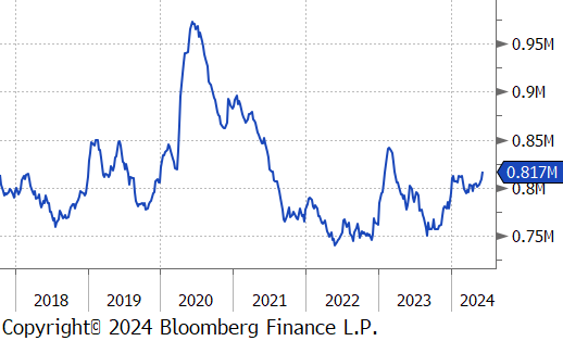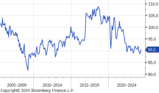 Finally, the NFIB Small Business Optimism rose above expectations of a flat print at 89.7, up to 90.5, and at the highest level of the year. The report clearly highlights some of the headwinds that we have referenced in the industrial sector because of sustained level of restrictive interest rates, however, the trend is an encouraging sign.