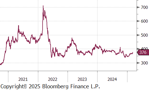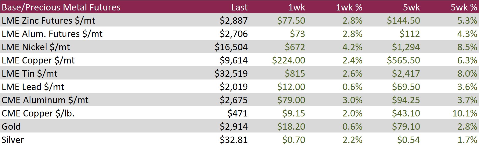The LME Turkish scrap 2nd month future increased by $11 or 2.9% to $376, rebounding to the highest price since November 2024.