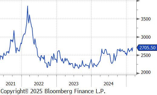 The Baltic Dry Index rose by $174 or 15.6% to $1,286, its third consecutive week of increases and the highest level since November 2024.
