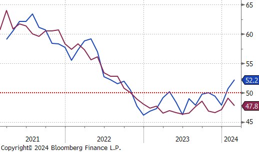 Final February S&P Global US Manufacturing PMI data came in at 52.2 higher than expectations of 51.5, pushing well into expansion territory. However, the more closely watched ISM Manufacturing PMI did the opposite, printing down to 47.8, below expectations of a slight increase to 49.5 The ISM Manu. PMI has now been in contraction territory for 17 months.