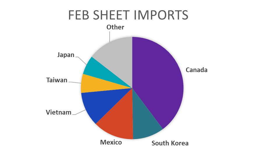 February Projection – Sheet 858k (down 24k MoM); Tube 388k (down 33k MoM)