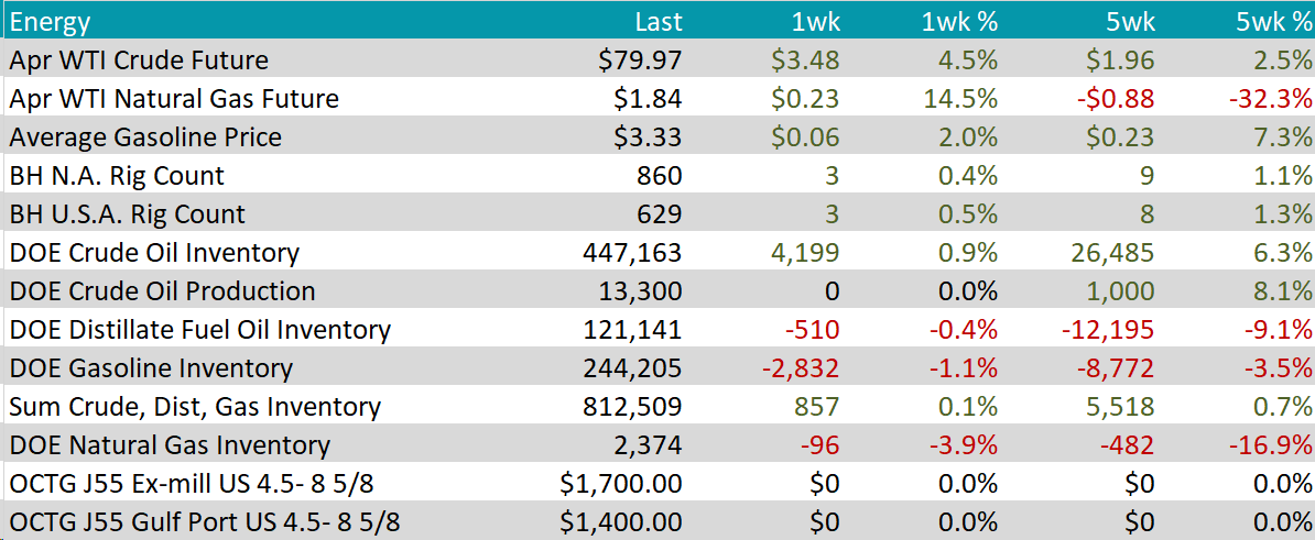 The Baker Hughes North American rig count gained 3 rigs, bringing the total count to 860 rigs. Similarly, the US rig count gained 3 rigs, bringing the total count to 629 rigs.