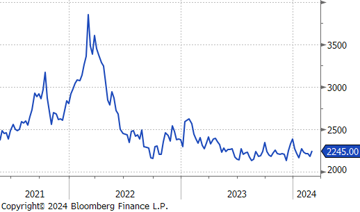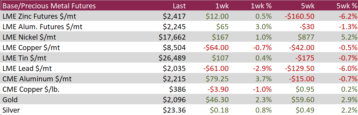 Aluminum rose by $65 or 3.0% to $2,245. This occurred as the upcoming legislative meetings in China are poised to influence global aluminum markets, with a focus on environmental sustainability, energy efficiency, and the transition to cleaner energy sources. Policies expected from these meetings may include tighter regulations on energy-intensive industries like aluminum production, potentially leading to production or capacity curbs. This shift towards greener investments and a renewed emphasis on energy efficiency could significantly impact aluminum pricing and production strategies, reflecting China’s balance between fostering economic growth and meeting its environmental and decarbonization goals.
