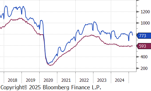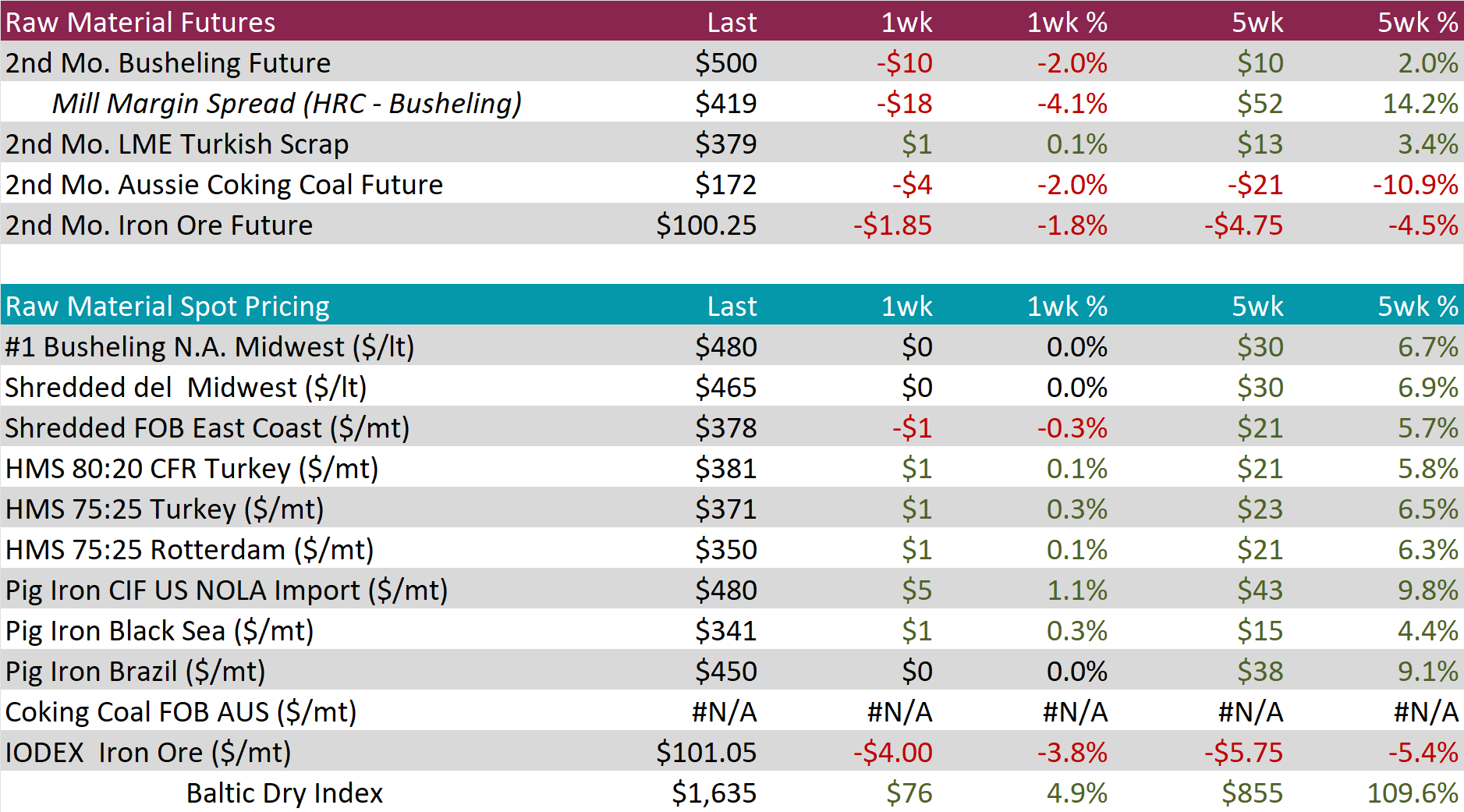 Tandem products were mixed, CRC unchanged and HDG up by $30, resulting in the HDG – HRC differential to jump up by $35 to $215.