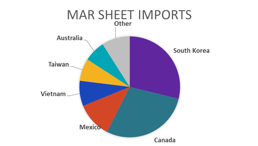 March Projection – Sheet 1069k (up 229k MoM); Tube 532k (up 164k MoM)