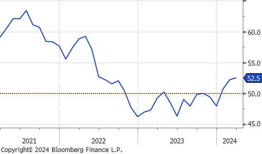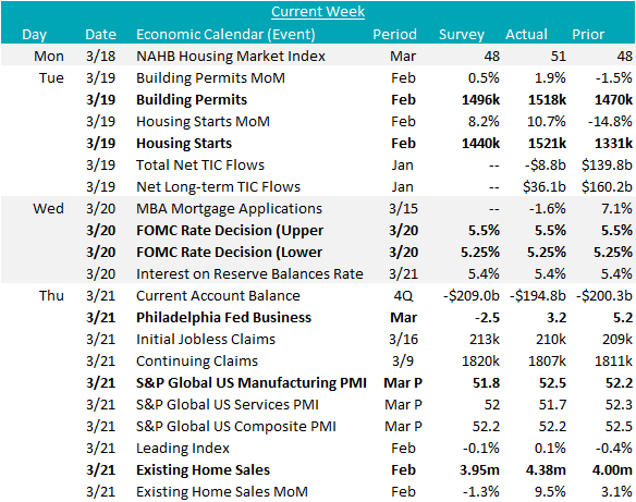 Finally, there was an update in the manufacturing sector. First, was the March Philly Fed manufacturing survey, which showed continued (albeit slowing compared to Feb) expansion in the region printing at 3.2 and beating expectations of a contraction at -2.5. Additionally, the S&P Global manufacturing PMI printed in its 3rd straight month of expansion at 52.5, above expectations at 51.8.