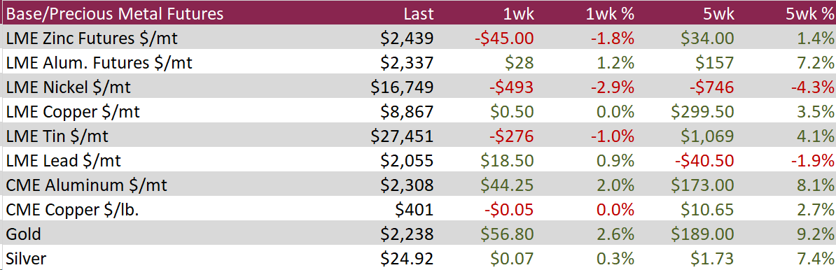 All watched global differentials expanded this week, with China Export HRC and domestic HRC declining by -1.7% and -2.0%, respectively. Another notable decline was the Korean HRC, which fell by -1.3%.