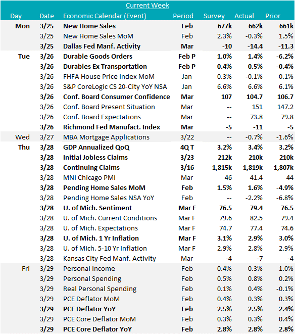 Housing data was mostly stable this week, after significant upside surprises in last week’s data for the sector. New home sales were only down slightly at 662k, compared to January and slightly below expectations. While pending home sales were up 1.6%, beating expectations of a 1.5% increase.