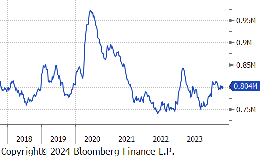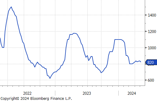 April Projection – Sheet 987k (up 31k MoM); Tube 401k (down 35k MoM)