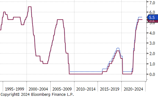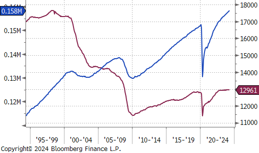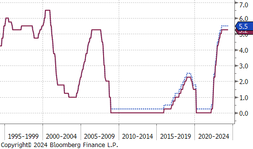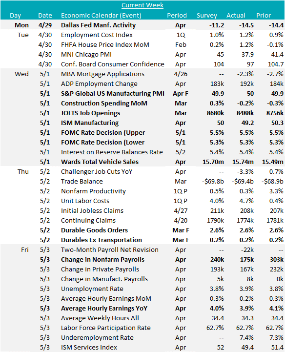 Ever since the current hiking cycle ended, the market has looked over “FED talk” and economic data with a fine-tooth comb, desperate to figure out when policy will start to ease. However, after 4 months of warmer than comfortable inflation readings and a Q1 GDP print that came in well below market expectations, this week’s meeting was going to be pivotal. The result was that the FOMC kept rates unchanged at 5.25-5.5% and Jay Powell’s press conference took more of a hawkish turn (both as expected, however, the latter did not fully satisfy market expectations). One of the more notable sticking points for why Powell drew his “hawkish line” below the threshold of the next rate move being a hike was because he noted that the committee viewed risks to their price/labor dual mandate more in balance than before. Plainly, this would suggest, they believe rates are sufficiently restrictive to bring inflation down while allowing the economy to continue growing and that an additional hike from here would do outsized damage to the labor market.