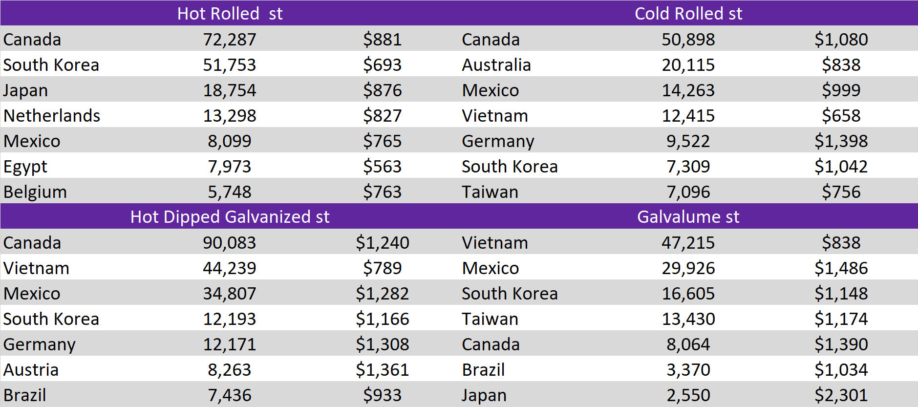 Tandem products both went up by $20, bringing the HDG – HRC differential to $330, a notable jump up of $35 or 11.9%.