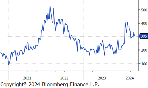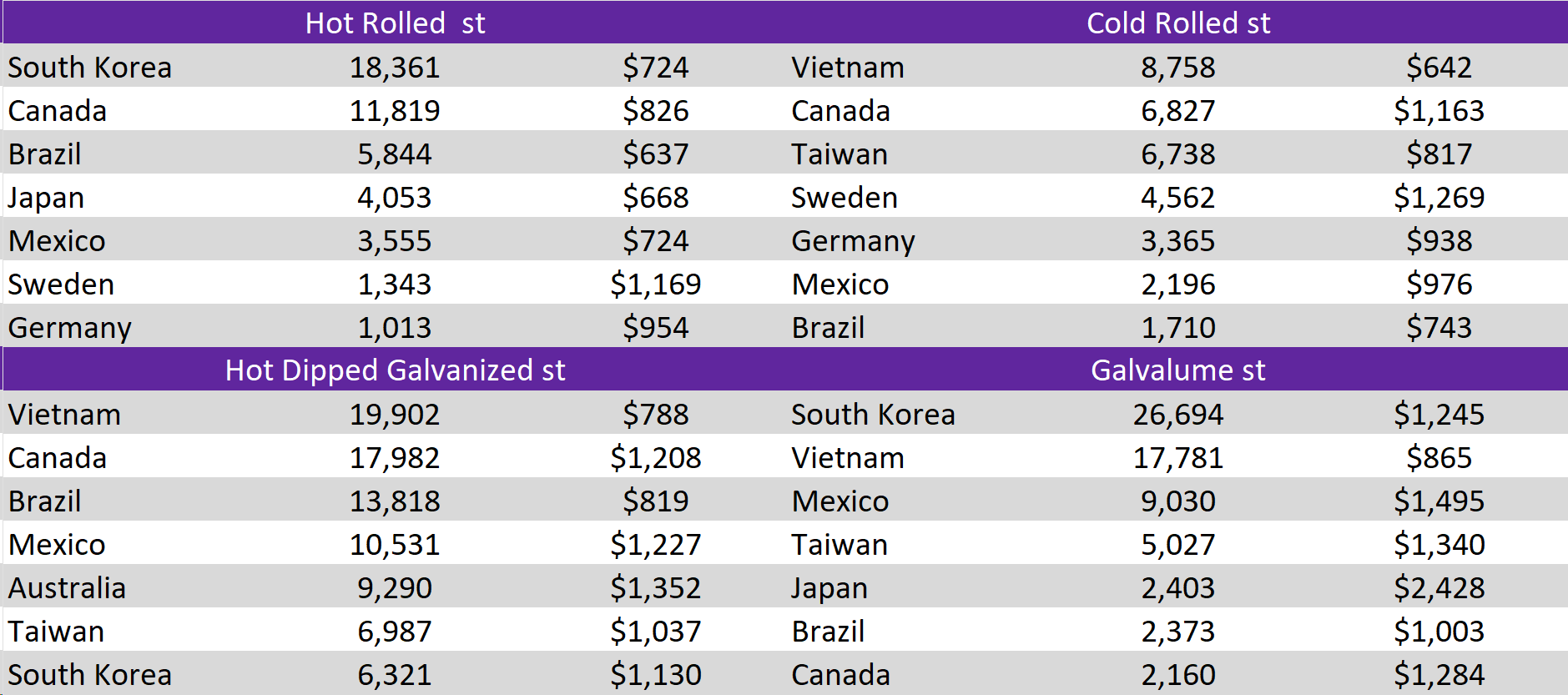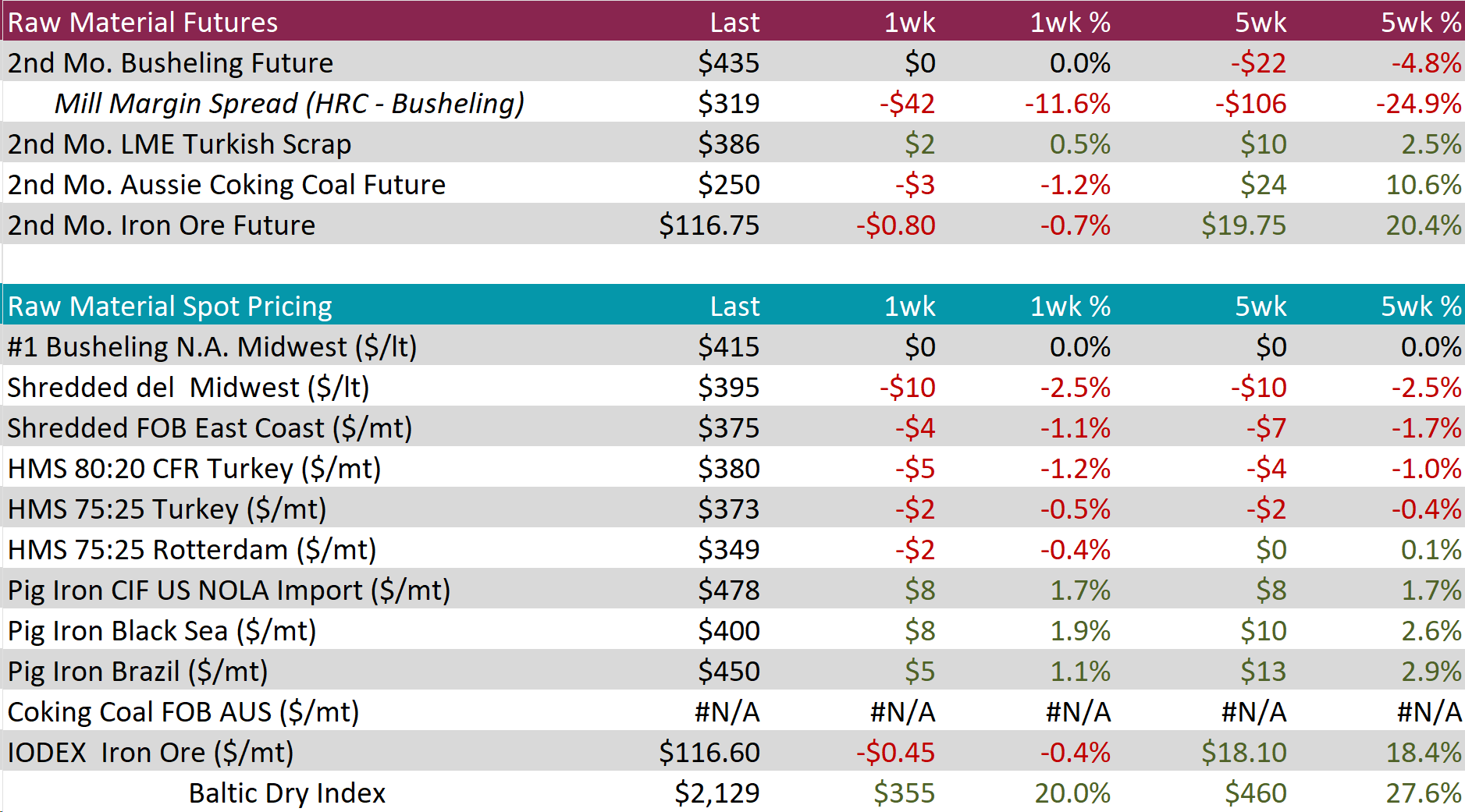 Tandem products both decreased by $40, resulting in the HDG – HRC differential to fall by $25 or -7.6% to $305.