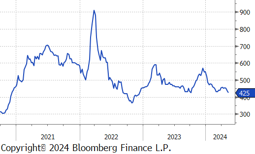 The 2nd month busheling future remained unchanged at $435, the five-week price change in now down by $22 or -4.8%.