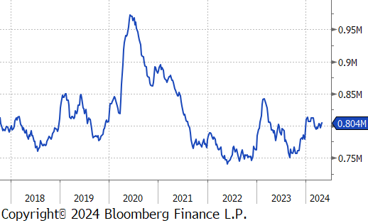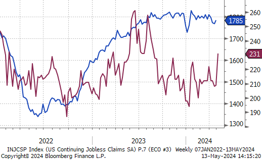 Additionally, Initial jobless claims data printed up to 231k for the week, above expectations of 212k and at their highest level since the August, last year. Continuing claims were up slightly to 1,785k versus expectations of 1,782k. Neither of these figures should sound an alarm – the threshold we are monitoring which would signify a structural problem in the labor market is if the 4-week moving average of initial claims surpasses 260k (currently at 215k).
