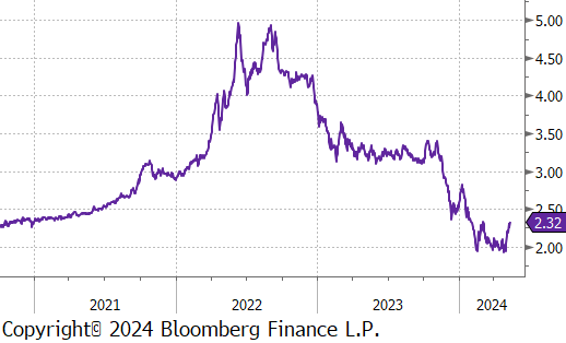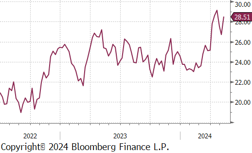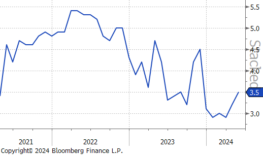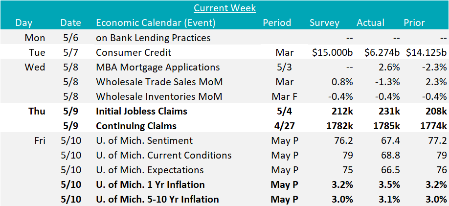 The University of Michigan Consumer Sentiment Survey is now down for 3 straight months after the May preliminary reading printed at 67.4, well below expectations of a print at 76.2. Looking more closely at the data, the 1yr Inflation Expectations reading of 3.5% versus an expected 3.2% might be the most concerning signal. Taking a step back, it’s important to recognize that consumer expectations surveys are historically not accurate predictors of inflations. That said, the significance of this decoupling in expectations should not be taken lightly and if consumers lose faith that price pressure is moving back to the FED’s target, the FOMC will need to move quickly towards more restrictive policy.