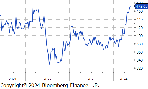 Copper jumped by $17.65 or 3.9% to $473, marking a two-year high, driven by strong long-term demand forecasts and tight supply concerns about potential shortages. Copper’s crucial role in global electrification efforts—from electric vehicle charging stations to grid-scale energy storage—supports these optimistic projections. Additionally, its increasing use in artificial intelligence and automation infrastructure is leading to higher demand. Recent data indicates that despite rising prices, China continued to import significant amounts of ore, underscoring sustained demand from manufacturers. However, material scarcity is squeezing margins for Chinese smelters, who contribute more than half of the global supply, prompting a potential 10% reduction in output this year. Faced with the high costs associated with developing new mines, major mining companies are turning to mergers and acquisitions for growth, exemplified by BHP’s recent bid to acquire Anglo American.