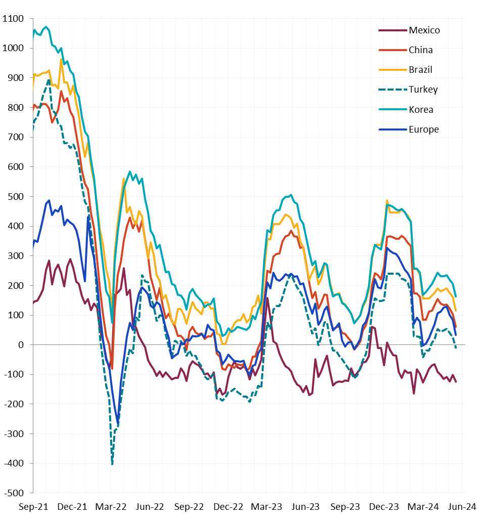 All watched global differentials contracted, except for Mexico, which HRC experienced a -2.7% decrease. Meanwhile, the Turkey Export HRC fell by -1.7% and Brazil Domestic HRC rose by 1.0%.