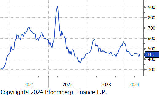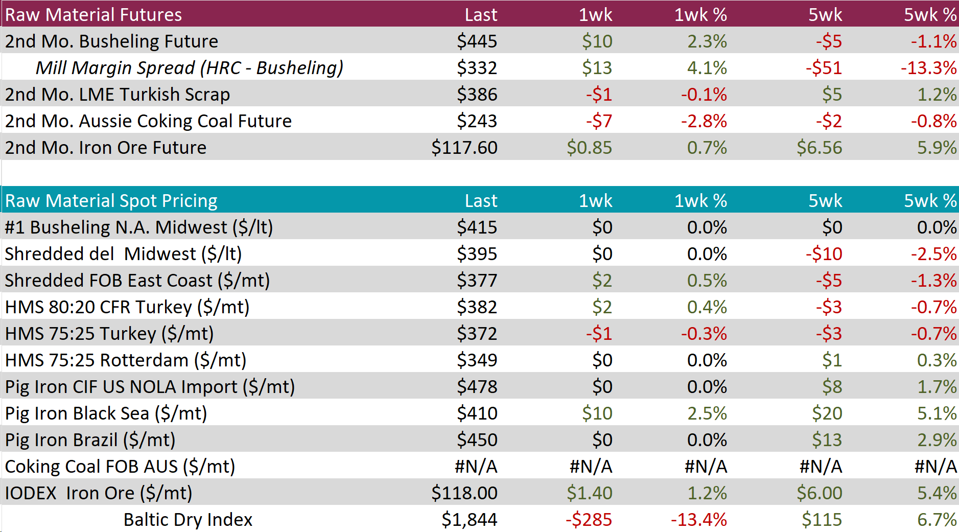 The busheling 2nd month future rose by $10 or 2.3% to $445, marking the first price increase in four-weeks.