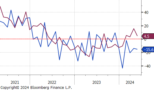 Manufacturing data largely disappointed this week, with the May Empire and Philadelphia Fed Manufacturing Surveys both below expectations, -(15.6 v -10.3), and (4.5 v 7.8), respectively. Even with the disappointment, it should be noted that Philly has been in expansion territory for 4 straight months. MoM industrial production also came in below expectations, printing 0%, v 0.2%. This was largely driven by manufacturing production – the largest component of the index – which was down -0.3% v 0.1% expected.