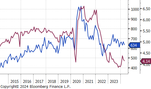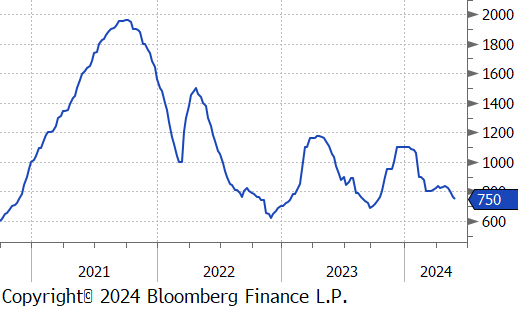 The HRC spot price dropped by $10 or -1.3% to $750, reaching the lowest price since mid-October 2023. At the same time, the 2nd month future dipped by $2 or -0.3% to $775.