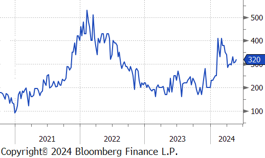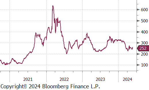 Tandem products both remained unchanged, resulting in the HDG – HRC differential to rise by $10 to $310.