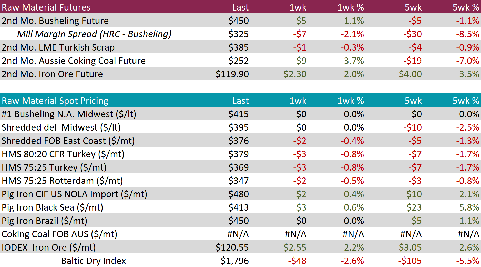 Mill production continued to increase, with capacity utilization ticking up by 0.6% to 77.8%, bringing raw steel production up to 1.728m net tons. This marks the highest level since early-April.