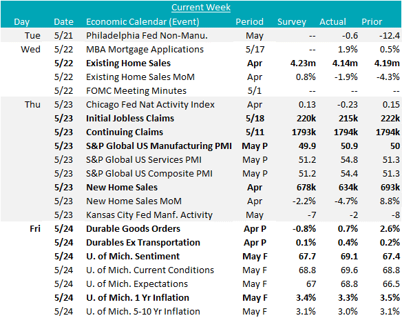 The Kansas City FED Manufacturing survey was up to -2, better than expectations of -7, but the index remains in contraction. Underlying data highlights the fact that a full recovery in the sector will take some time. Additionally, the preliminary May S&P Global Manufacturing PMI beat expectations of 49.9 and rose into expansion territory, to 50.9. This is 5th straight print in expansion territory. April preliminary Durable Goods surprised to the upside as well, with new orders up 0.7%, versus the expected 0.8%. This could also be an encouraging signal for the auto sector which is a major part of this index and has so far disappointed this year.