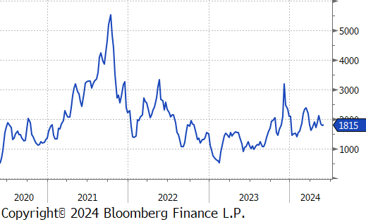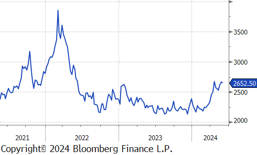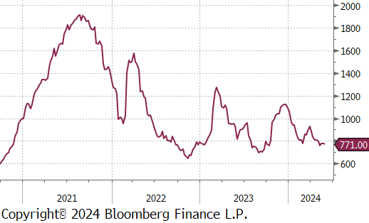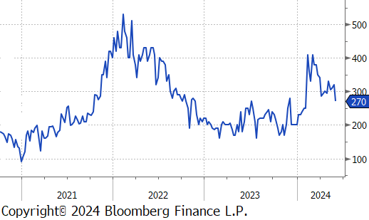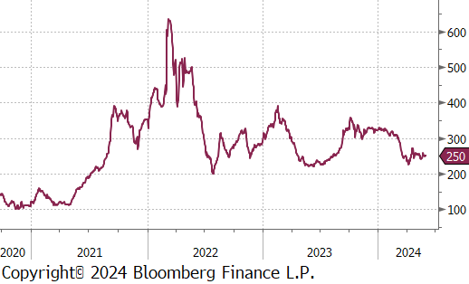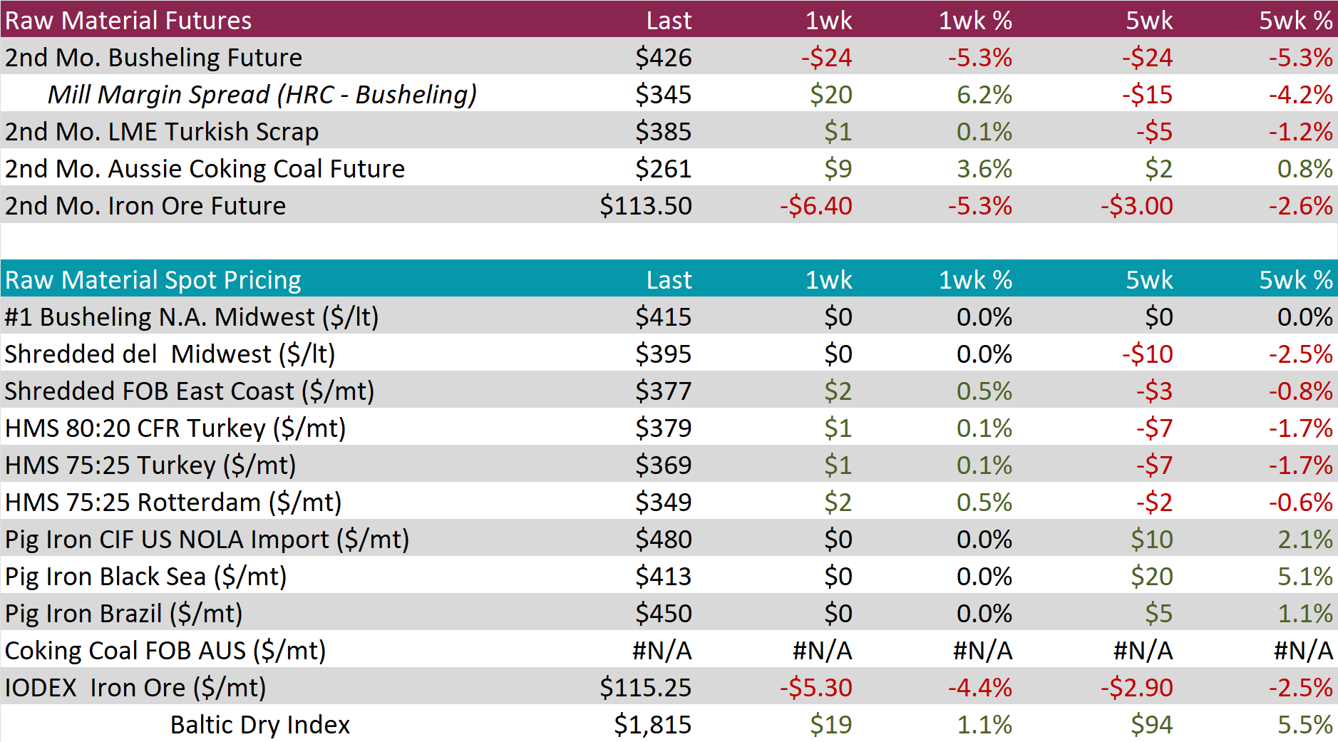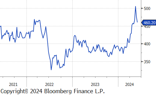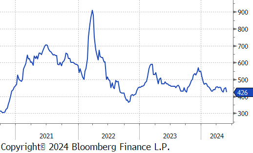 The busheling 2nd month future dropped by $24 or -5.3% to $426, hitting its lowest price since October 2023.