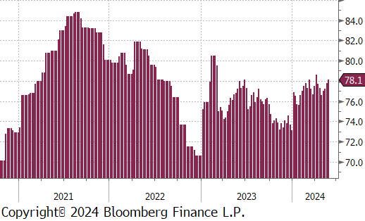 Mill production continued to ramp up, with capacity utilization ticking up by 0.3% to 78.1%, bringing raw steel production up to 1.735m net tons – a level not seen since early April.