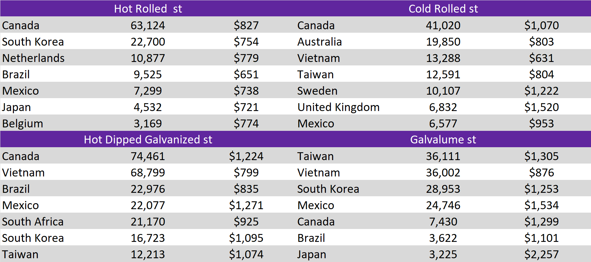 Tandem products both dropped by $50, resulting in the HDG – HRC differential to be down by $50 or -15.6% to $270, its lowest level since early 2024.